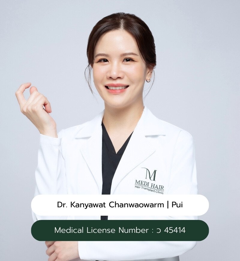 Medi Hair Clinic is a permanent hair transplantation clinic founded by Dr. Aphakorn Laochunsuwan (Dr. Aim), a specialist in hair transplant surgery certified by the American Board of Hair Restoration Surgery (ABHRS). The clinic addresses hair loss, thinning hair, and baldness, using state of the art tools such as the DHI Implanter, internationally recognized for hair restoration.