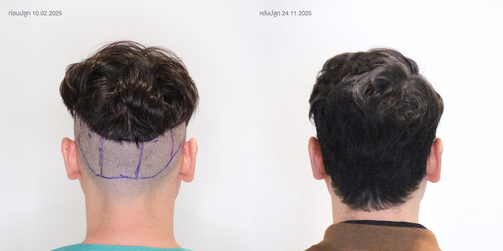 2. โกนผมบริเวณด้านหลังสั้นระดับ 1–2 มม. เพื่อเตรียมพื้นที่ให้สะดวกต่อการเก็บและปลูก