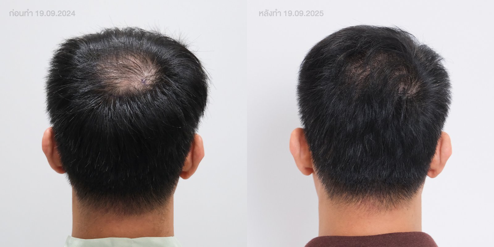 หมายเหตุ: หากมีภาวะรูขุมขนฝ่อขั้นสูง (พื้นที่โล่งเนียน) อาจตอบสนองจำกัด ควรพิจารณาร่วมกับการปลูกผม
