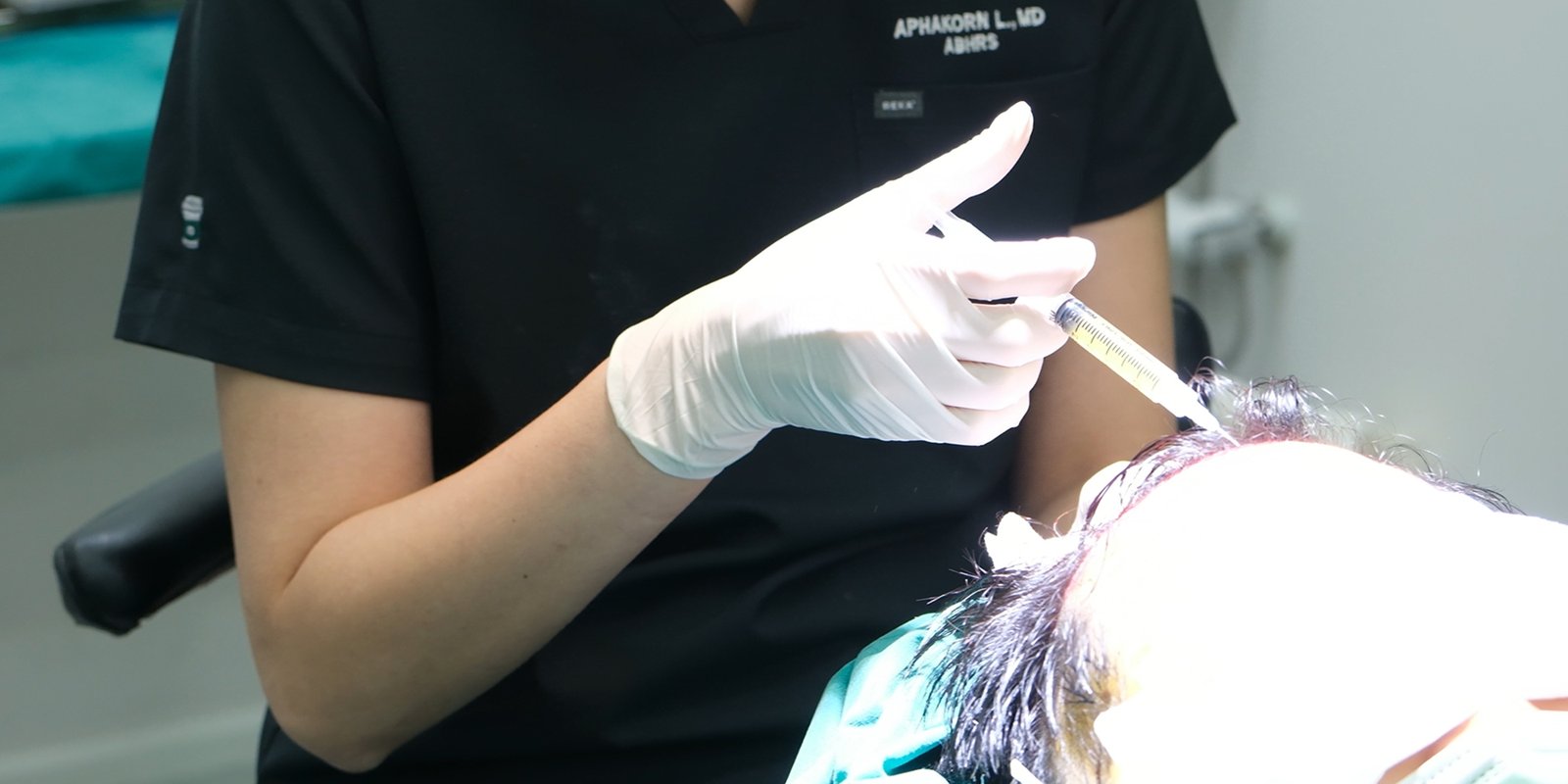 4. ฉีดสารแขวนลอยไมโครกราฟต์ กลับเข้าสู่บริเวณผมบางตามแผนแผนที่หนังศีรษะ (scalp mapping)